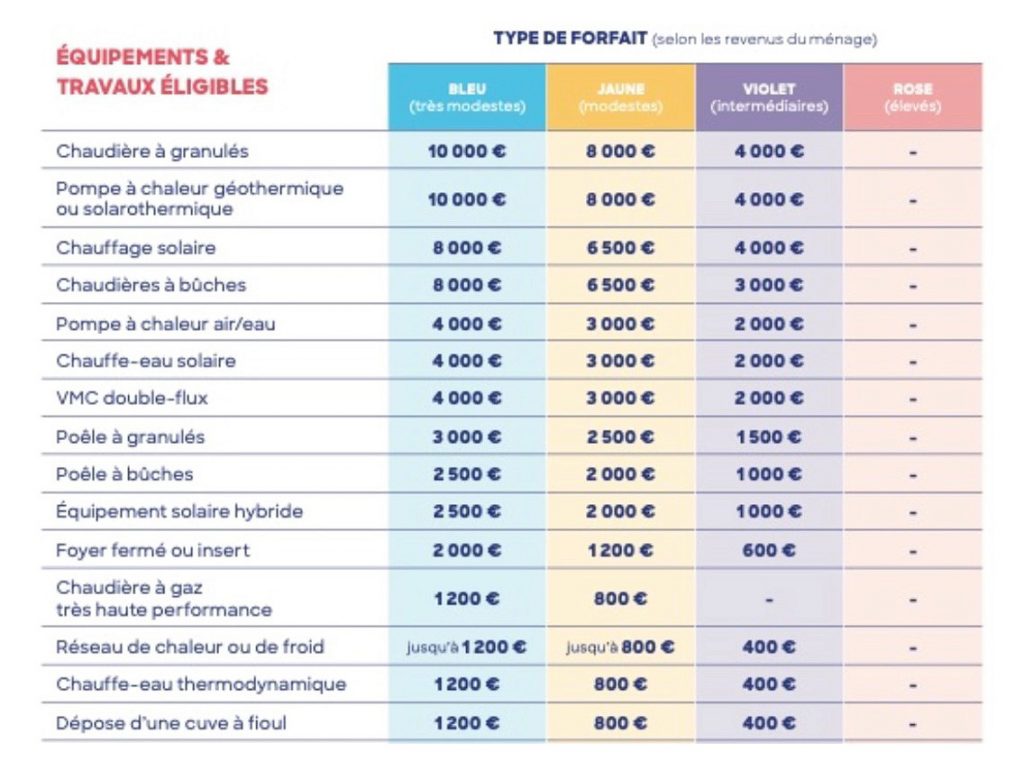 La grande différence avec cette prime est qu’il s’agit d’une aide unifiée, avec un montant forfaitaire (et non plus un pourcentage du montant des travaux), qui dépend du type de travaux réalisés et de votre revenu.